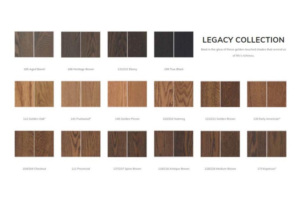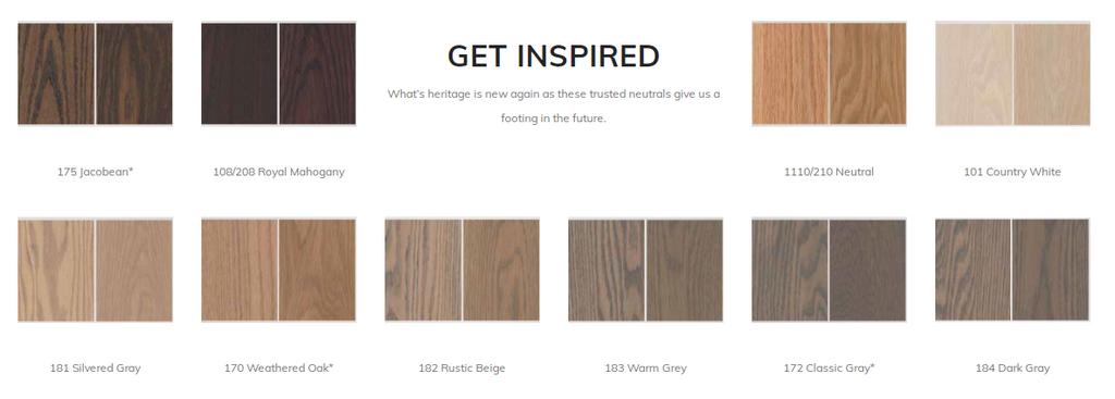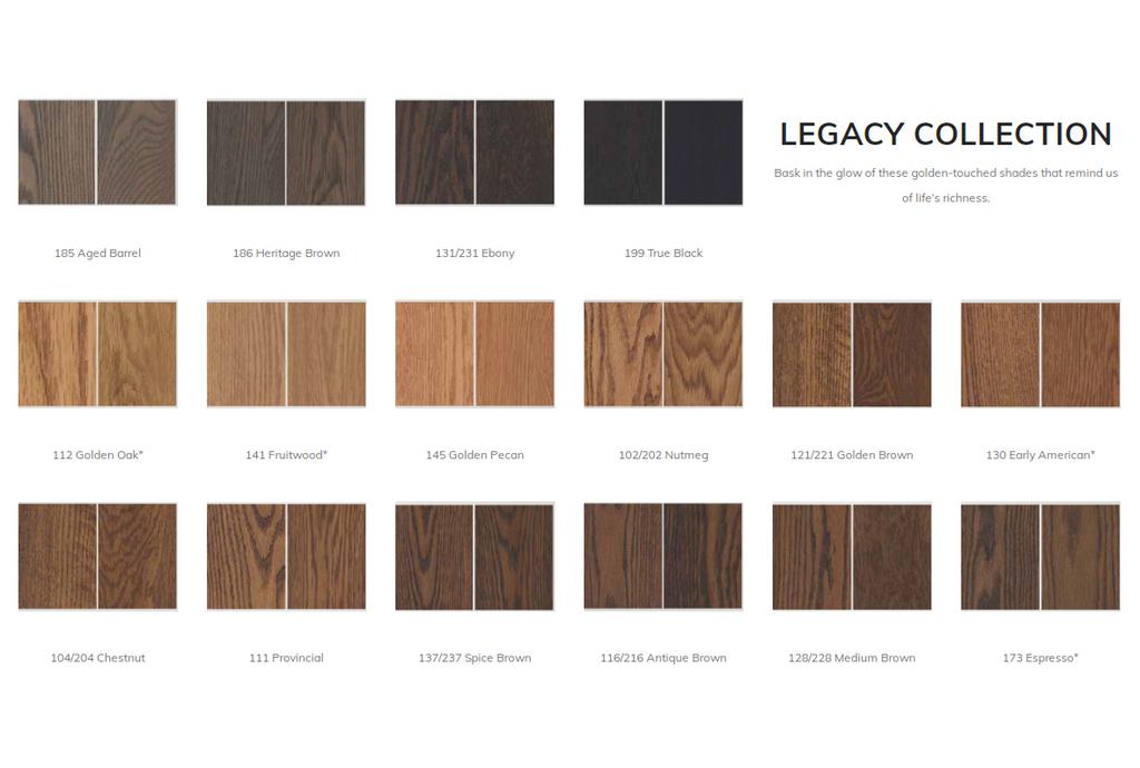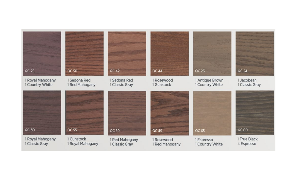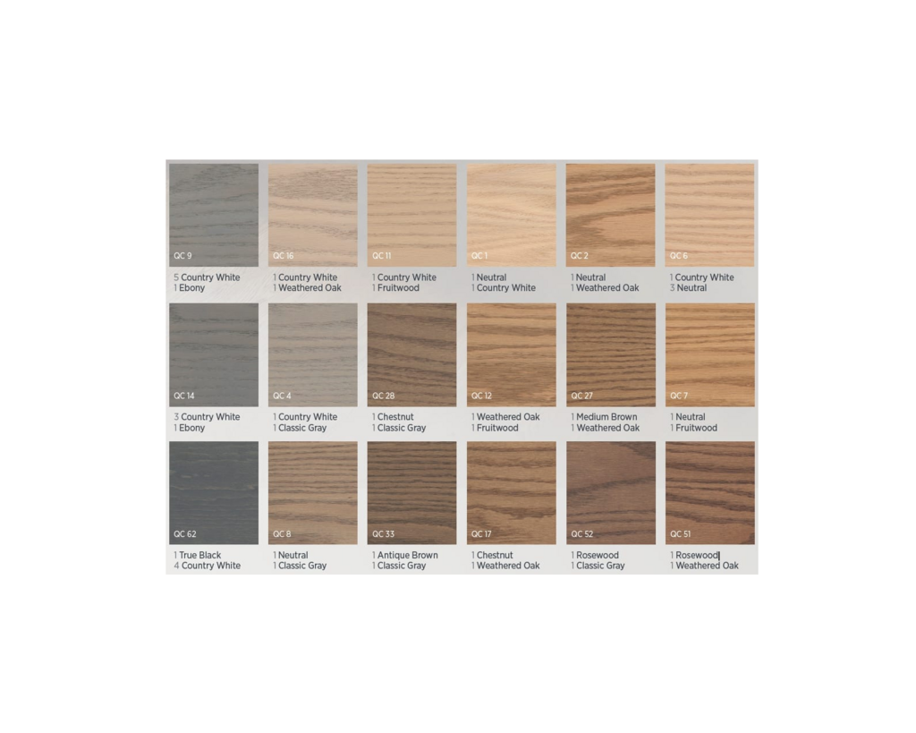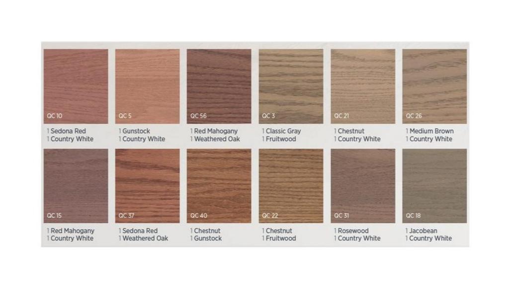 COLORS SHOWN ON BOTH RED OAK (LEFT) AND WHITE OAK (RIGHT)